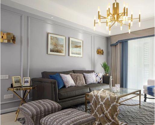 黄铜、黑色金属材质是轻奢风的主要元素,灰色这种优雅的自然色系,以金色、黑色做为点缀,格外精致。